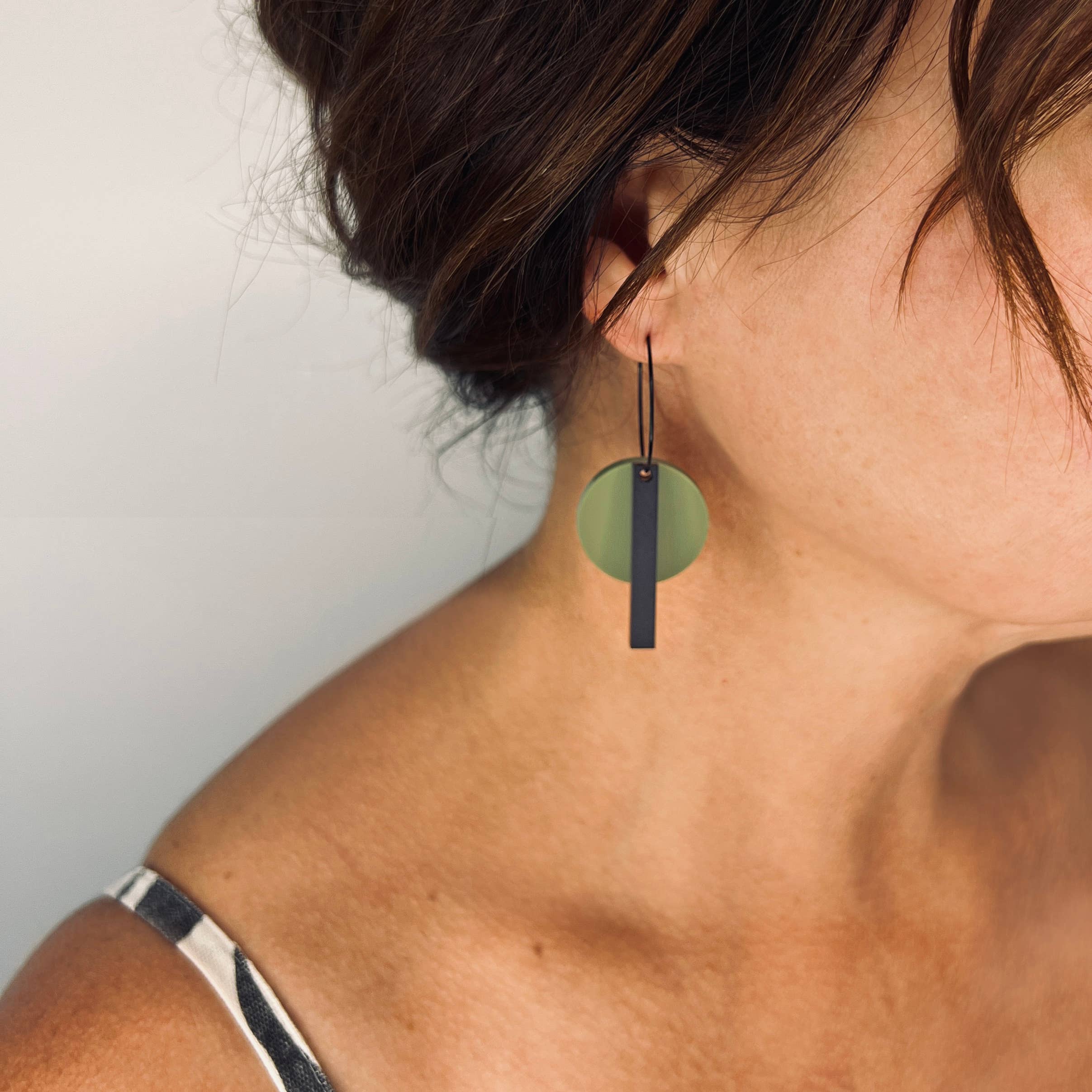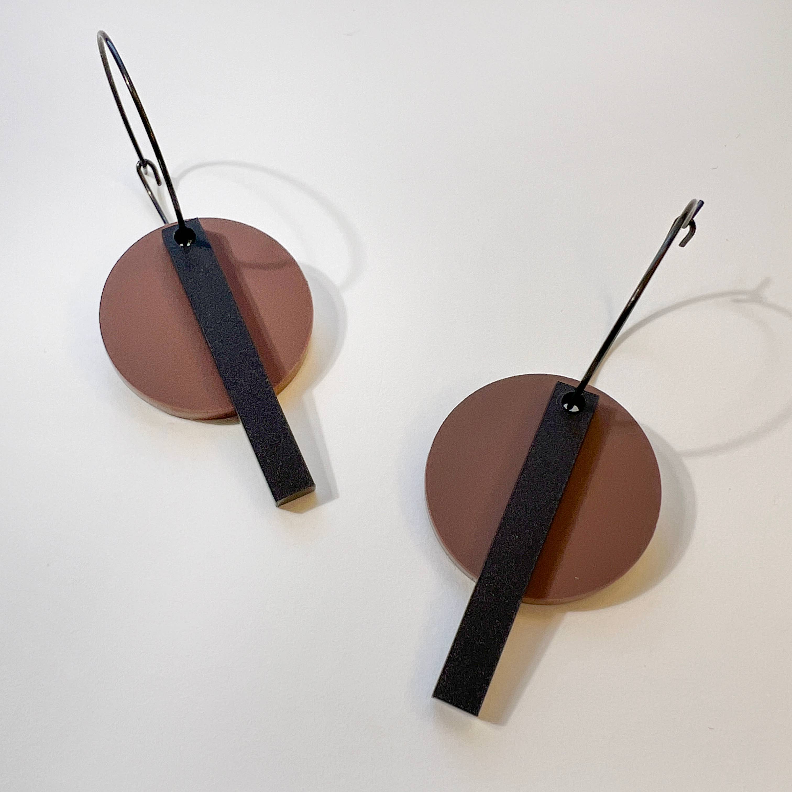 The all new 'Bar Hoop' is an ultra modern take on the classic hoop featuring a matte black bar combined with a simple round disc hanging from a hypo-allergenic black hoop.