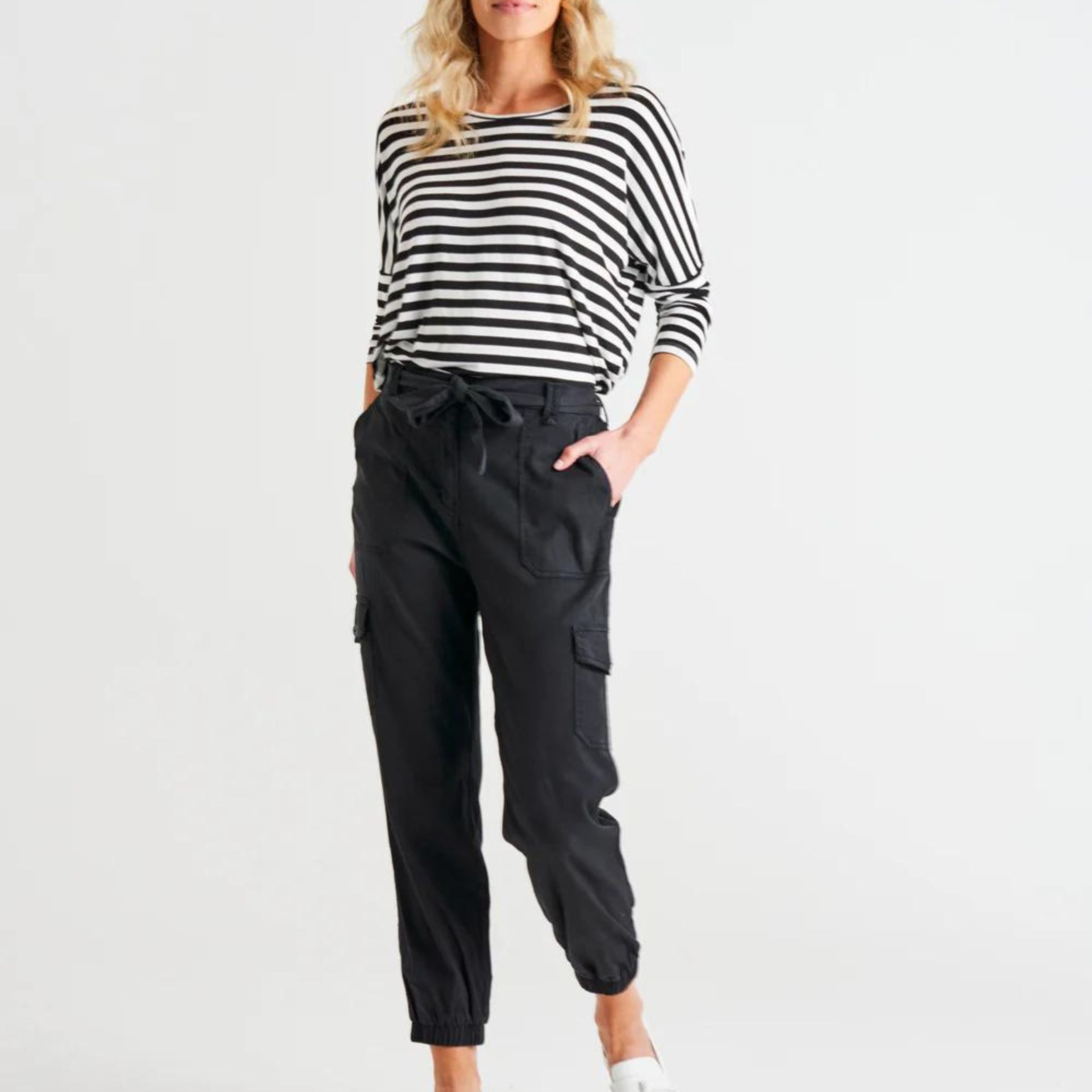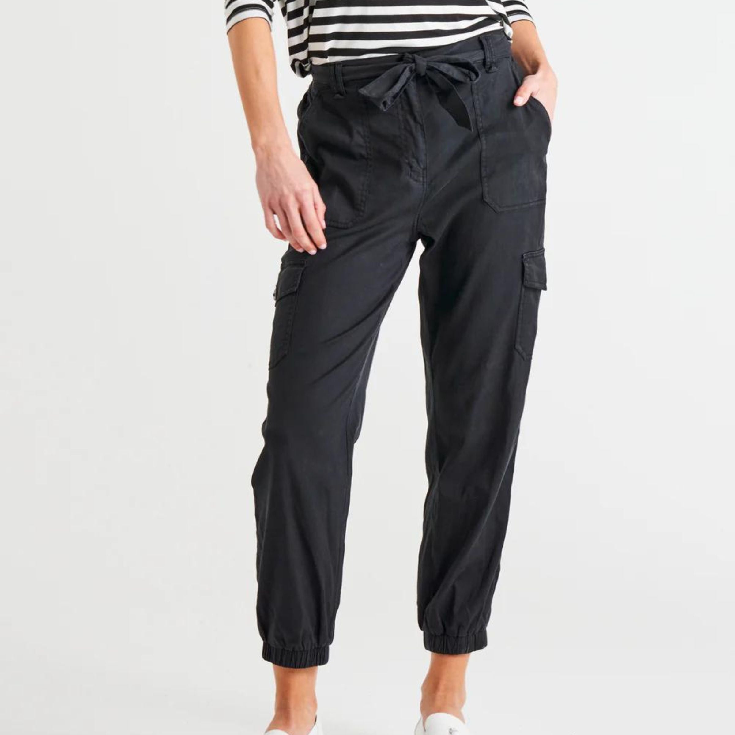 This cargo pant is THE must-have trend of the season, and we've made it even better with our comfy and stretchy lyocell fabric. The elastic back waist means you can eat that extra slice of pizza without feeling uncomfortable, and the cargo pockets are perfect for stashing all your stuff. Plus, the Canterbury Lyocell Cargo Pants are so easy to wear - you can dress them up with heels or keep it casual with sneakers. It's the perfect pant for when you want to look stylish but also feel comfy and practical. So don't be caught without the hottest trend of the season - get your hands on the Canterbury Lyocell Cargo Pants today!